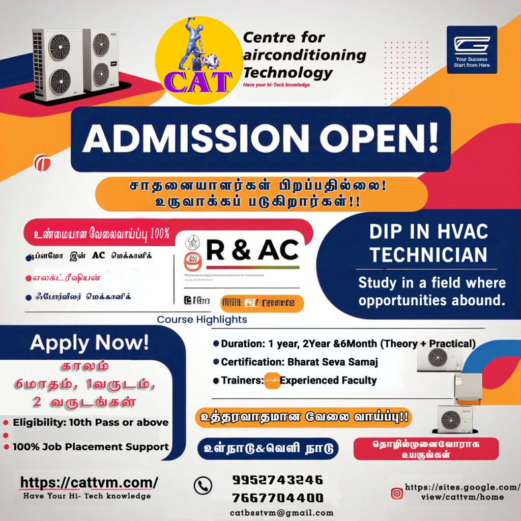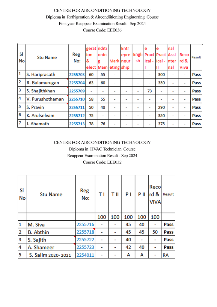 Notification FOLLOW OUR BLOG HERE Reappear Examination IInd Year Result AUG -2025 Reappear Examination Irst Year Result AUG -2025 Reappear Examination HVAC Result AUG -2025 Payment Detailsaccount No: 6080002100001550Name: CENTRE FOR AIRCONDITIONING TECHNOLOGYBank: PNBIFSC Code: PUNB0608000 Dip in HVAC TECHNICIAN FINAL EXAMINATION TIMETABLE DEC - 2024 PARENTAL CONSENT FORM (For 90-Day Direct Training at Smart Service) Download REJOINING APPLICATION FORM Download Diploma in HVAC Technician Course Dec 2023-2024 Result Exam notification June 2025 Notification FOLLOW OUR BLOG HERE Payment Detailsaccount No: 6080002100001550Name: CENTRE FOR AIRCONDITIONING TECHNOLOGYBank: PNBIFSC Code: PUNB0608000 PARENTAL CONSENT FORM (For 90-Day Direct Training at Smart Service) Download REJOINING APPLICATION FORM Download Diploma in HVAC Technician Course Dec 2023-2024 Result Diploma in HVAC Technician Course 2024-2025 Result Diploma in R&AC Course Final Year 2023-2025 Result Diploma in R&AC Course First Year 2024-2026 Result Re-Appear Exam Application Download