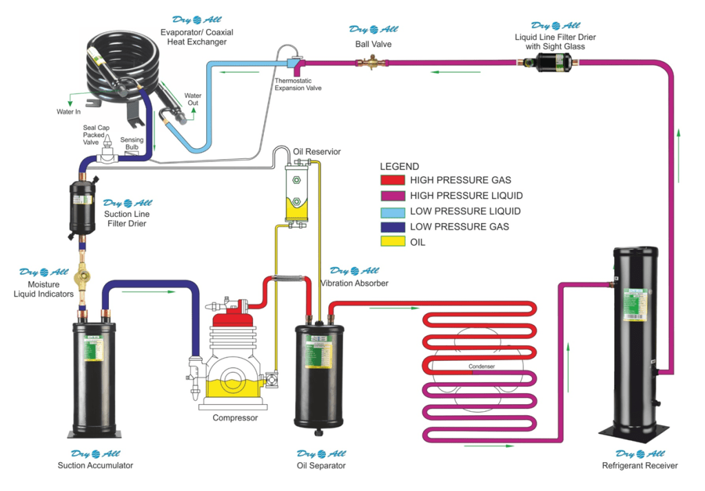 Discharge line-இல் பொருத்தப்பட்ட oil separator அந்த oil-ஐ refrigerant-இலிருந்து பிரிக்கிறது.