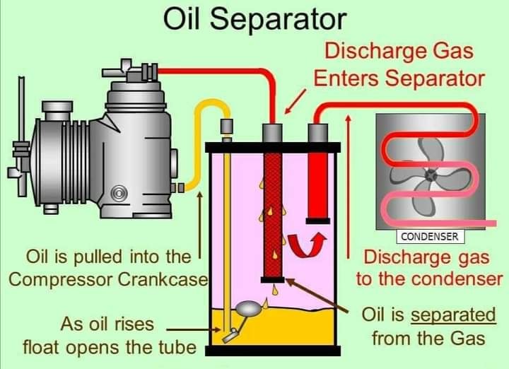 அந்த எண்ணெயை மீண்டும் compressor crankcase-க்கு திரும்பப் பெறுவதற்காக Oil Separator பயன்படுத்தப்படுகிறது.